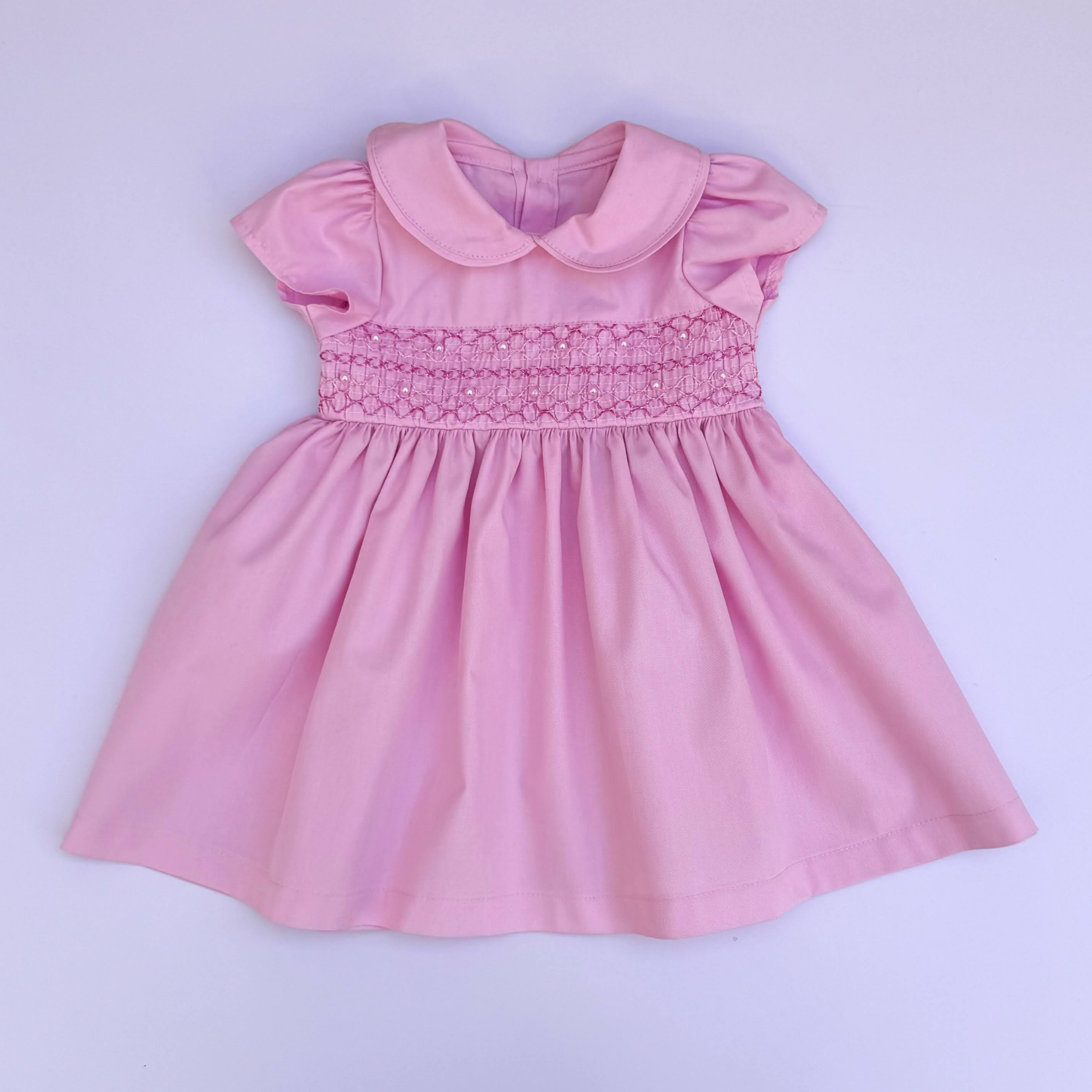 Feito no modelo bata com pala bordada no estilo smock, esse vestido rosa transmite doçura e elegância na medida certa. A gola peter pan e as manguinhas fofas completam o visual clássico e atemporal, ideal para ocasiões especiais, festas, ensaios fotográficos ou passeios em famĂlia.