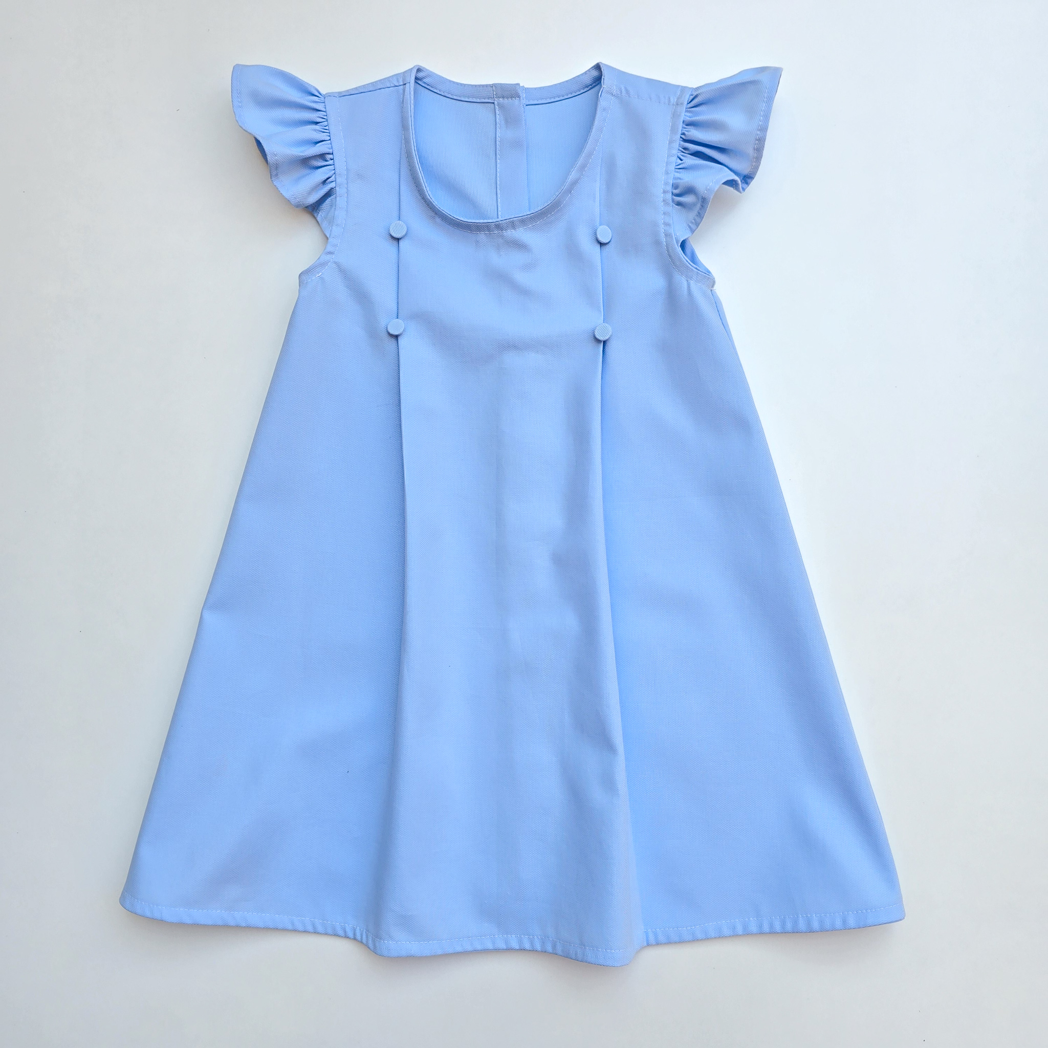 VESTIDO LARA AZUL BEBE PREGAS NA FRENTE E MANGA FRU-FRU